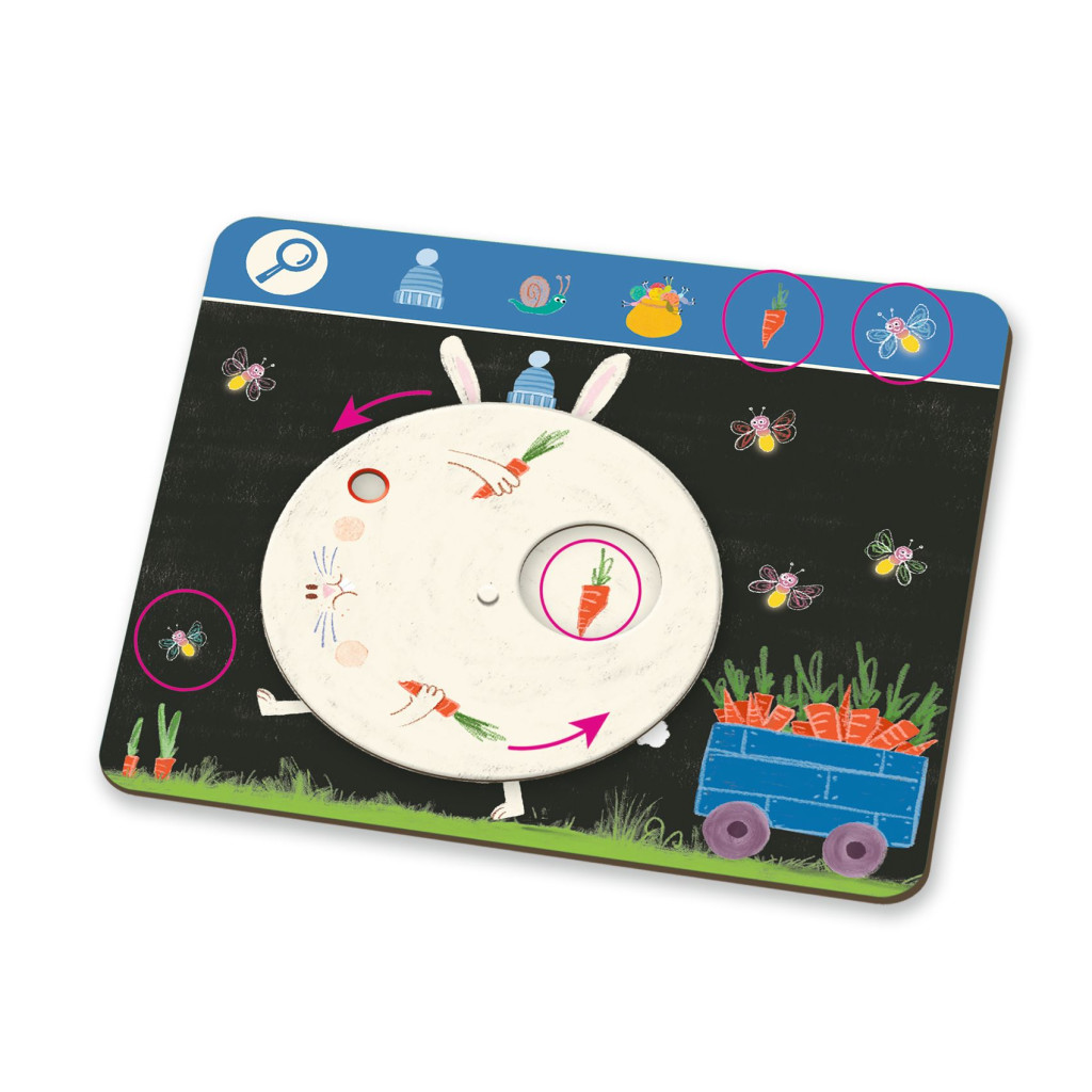 A "Keress és pörgess" egy első böngésző játék kicsiknek, mely eredeti, szórakoztató és tele van izgalommal. A forgókorongokkal ellátott 6 játéktábla minden körben újabb felfedezésre és cselekvésre inspirál. Ebben a "kukucskálós" játékban az illusztrációk szinte életre kelnek a kis kezek alatt...