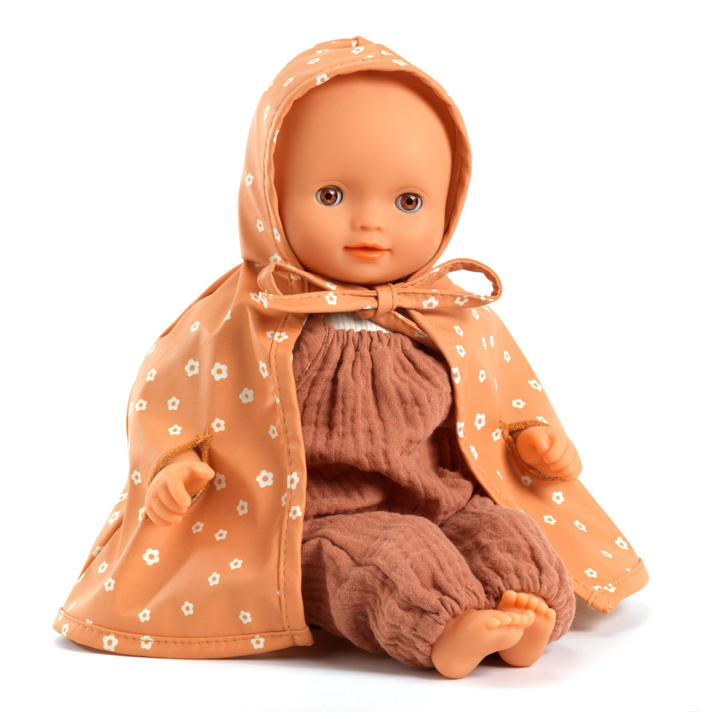 Vízhatlan, virágmintás esőköpeny Pomea babáknak.