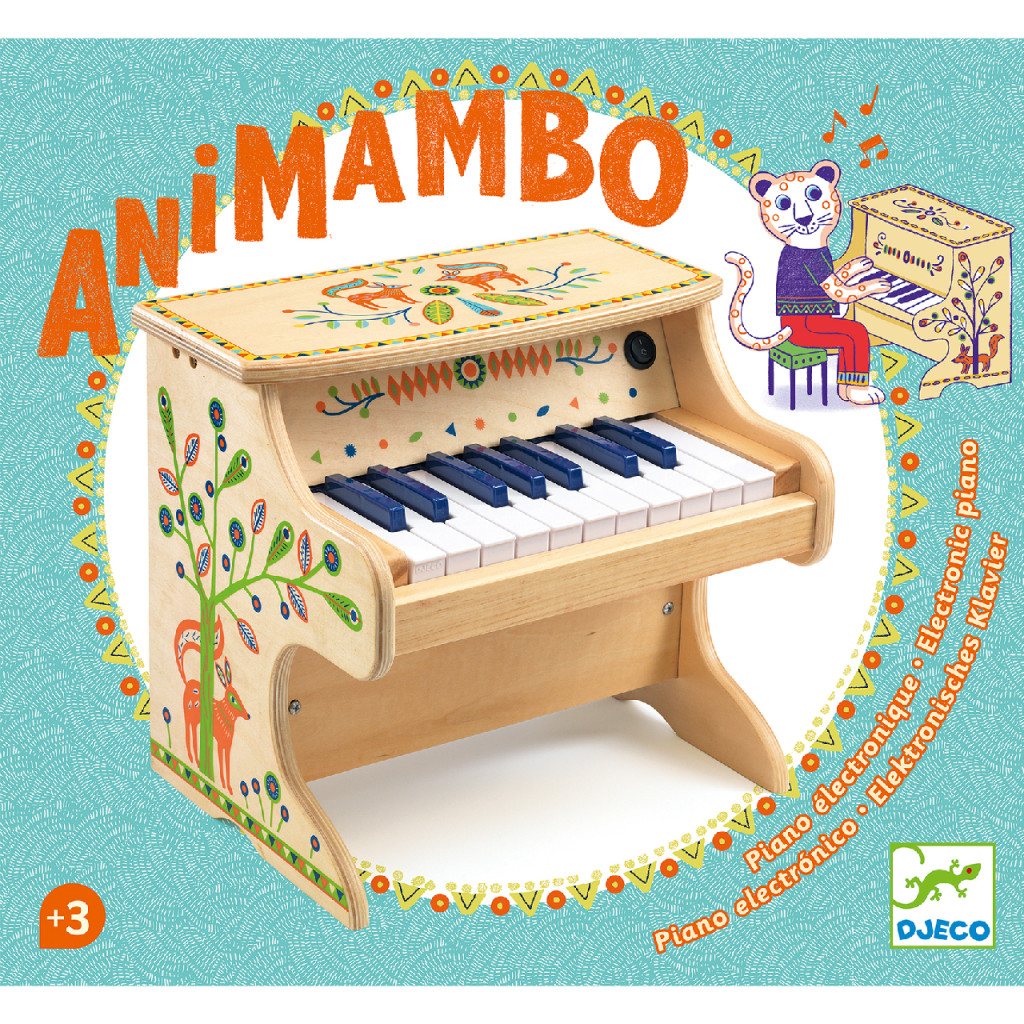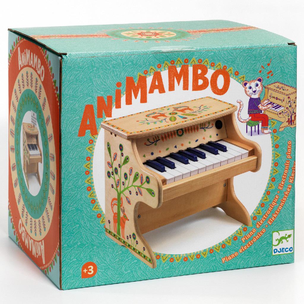Az Animambo elektronikus zongora a Djeco-tól jó szórakozást nyújt a zene megismerésében és a motoros készségek fejlesztésében. Ki-bekapcsolható játékhangszer, amelyhez színes kotta is tartozik. A színek a kottában a hangjegyeket jelölik, így az a gyermek is le tud játszani kisebb dallamokat, aki nem ismeri még a kottát. Színes kottákkal kezdik a szakemberek az egészen kicsik szolfézs oktatását, ha már megbarátkozott a gyermek a hangok színjelével, könnyebben megtanulja a hagyományos kotta jelzéseit is.
