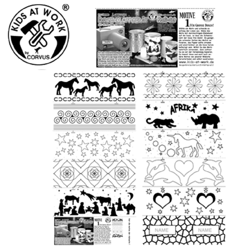 A csomagban 5 ív található, mindeegyik íven 11 különböző téma. A papírokat a jelölések mentén kell szétvágni, azután konzervdoboz mécsesek oldalára lehet ragasztani. A sablonok szerint szeggel kilyukasztgatni a konzervdobozt. A dobozba helyezett mécses fénye átvilágit a lyukakon és kirajzolja a mintázatot. Nagyon meghitt ez a hangulatvilágítás.