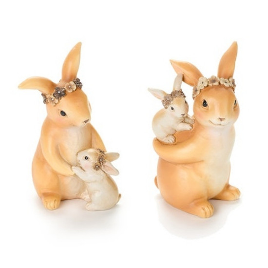 N.S.CY240702B Nyuszi kisnyuszival a hátán, virágkoszorúval, 7x7x12,5cm, műanyag dekorfigura