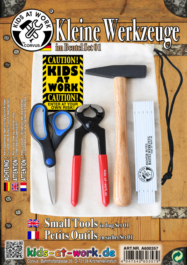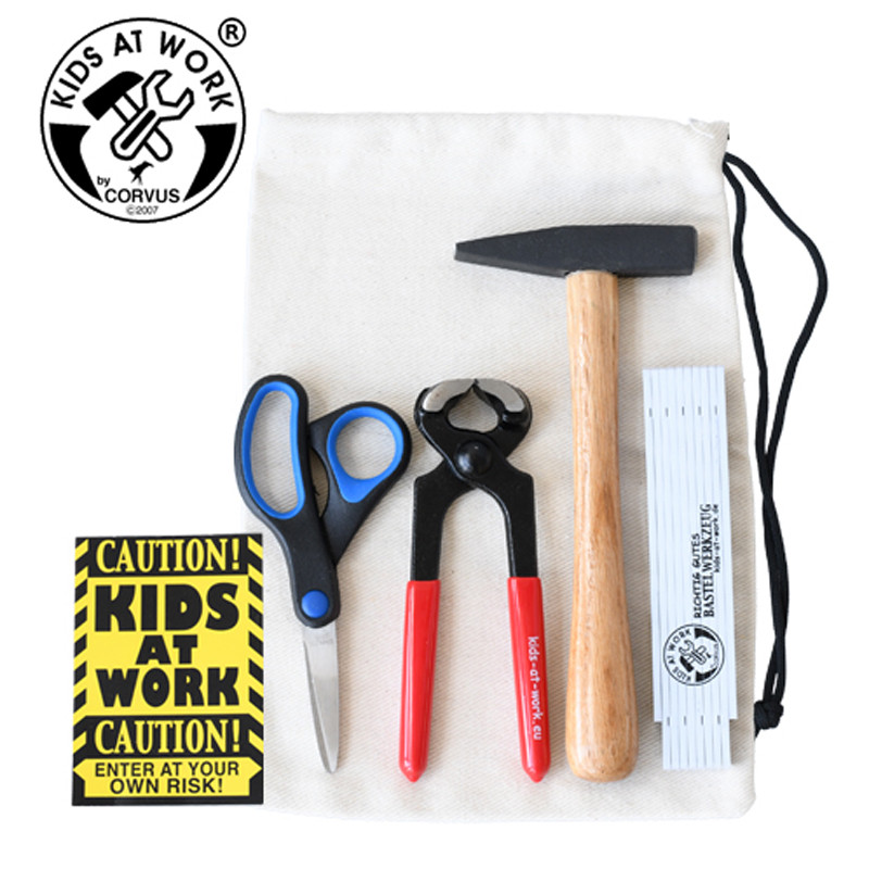 A csomag tartalma: 1db olló, 1db harapófogó, 1db kalapács, 1db 1 méteres collstok, 1 db figyelmeztető tábla, 1db vászonzsák