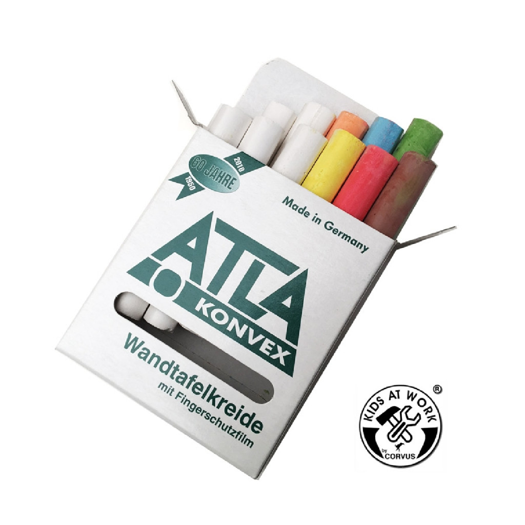 A táblakréta készletben fehér és színes kréták vanak vegyesen.