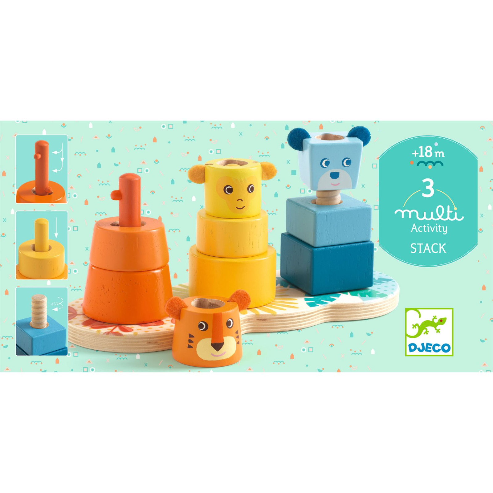 A Multi játékokban háromféle játékra van mód: a gyermek rakosgat, épít, majd megismer és használ egy új kézmozgást igényló mozdulatot, és színek szerint szétválogathatja az állatfigurák részeit.