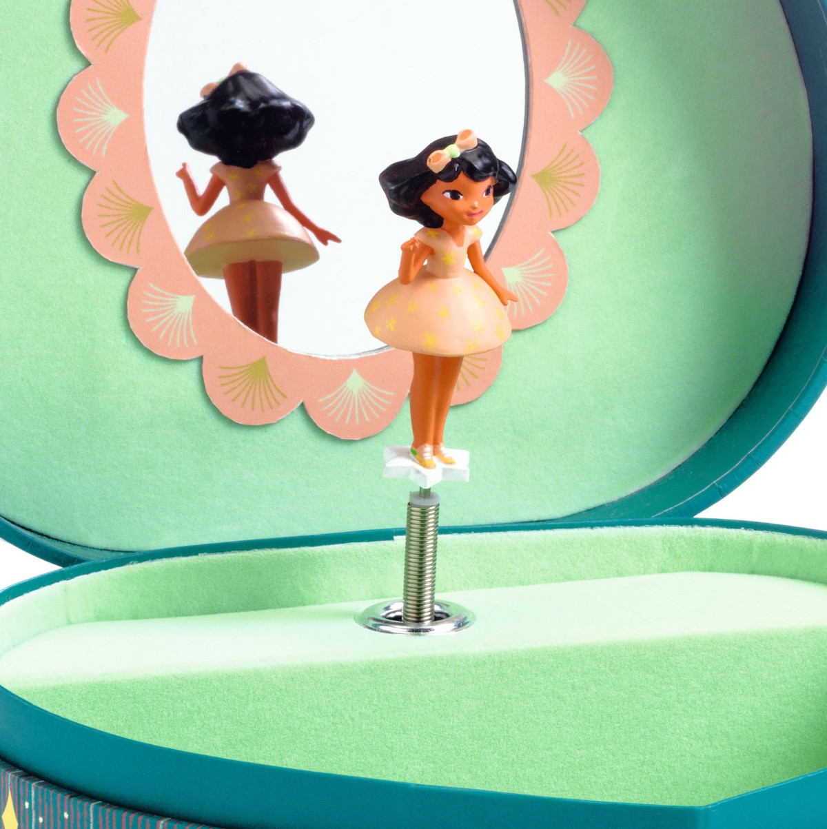 Miközben a kis lányka figura körbe táncol Johann Strauss: Mesél a bécsi erdő című zenéjére, kiválaszthatod, hogy melyik ékszereidet szeretnéd aznap felvenni. Az ékszerdoboz fából készült, belseje zöld plüss bevonatú. Lehet fülbevalókat, karkötőket és nyakláncokat tartani benne. A lányka figura műanyagból van. Ideális születésnapi alkalomra, ajándékozásra.