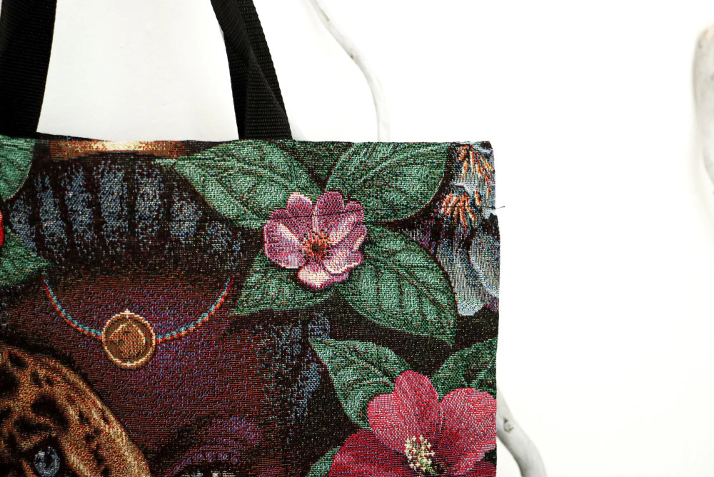Leopárdos, trópusi hangulató bevásárló táska belső zsebbel. Alsó részén 6 cm széles, így a pakolás is egyszerűbben megy. Strapabíró anyagból készült, megfelelő kezelés mellett évekig megőrzi szépségét és minőségét.